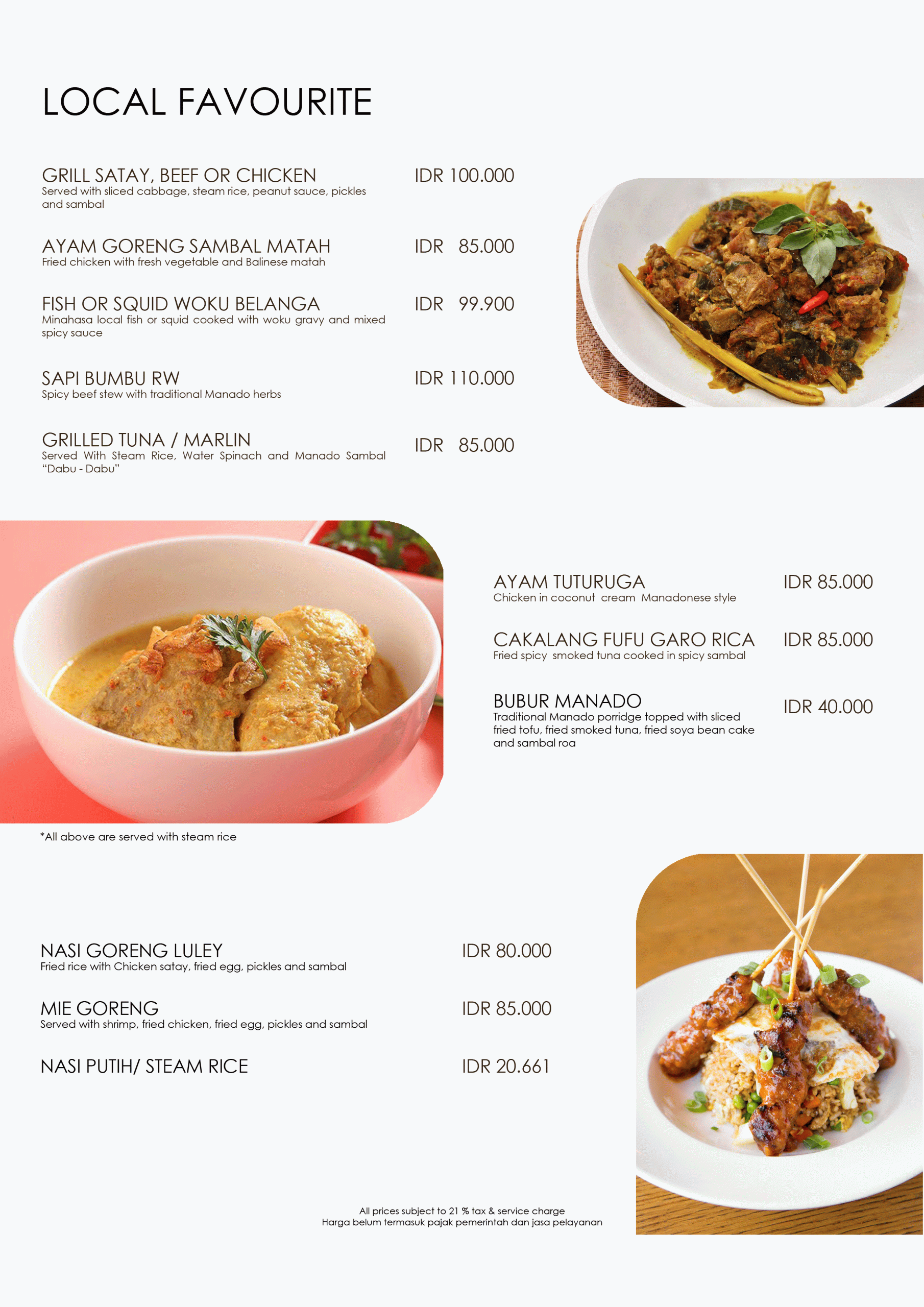 Discover a variety of dining options available throughout the resort. From delicious local specialties to international cuisine, explore our restaurants, bars, and room service menus. Find daily specials, signature dishes, and refreshing beverages prepared to enhance your stay.